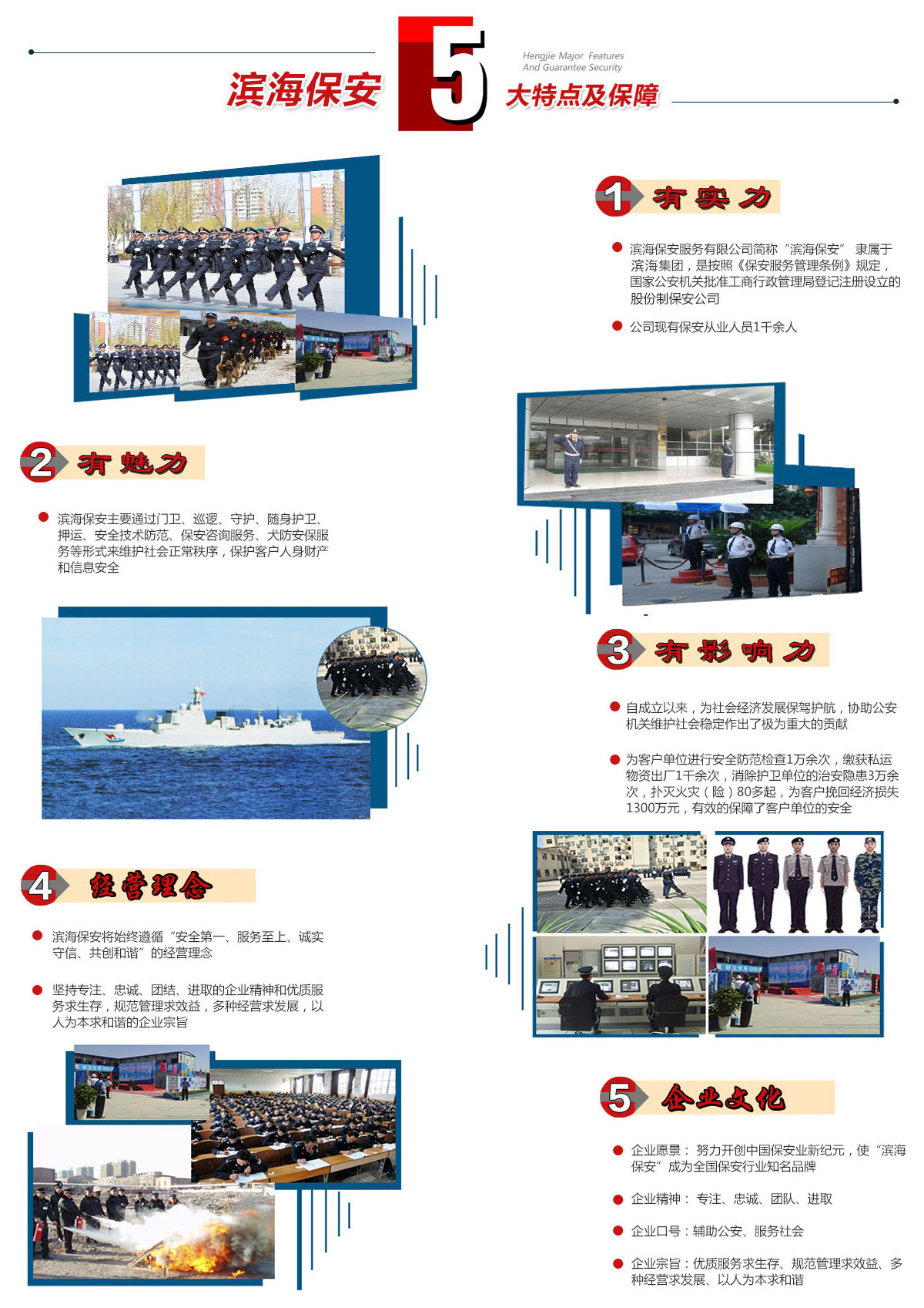 山東濱海保安服務(wù)有限公司簡稱“濱海保安” 隸屬于濱海集團(tuán),是按照《保安服務(wù)管理?xiàng)l例》規(guī)定,國家公安機(jī)關(guān)批準(zhǔn)工商行政管理局登記注冊設(shè)立的股份制保安公司。
